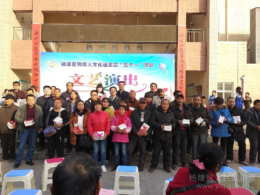 为丰富残疾人日常生活,提高残疾人事业社会影响力,2019年11月19日,杨陵区残联组织40名残疾人开展了残疾人文化进家庭“五个一”活动。项目内容主要是帮助残疾人每年读一本书、看一次电影、游一次园、参观一次展览、参加一次文化活动。