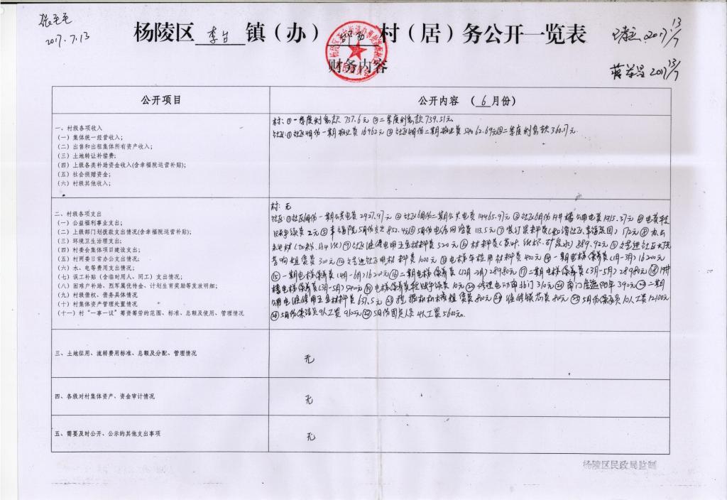李台街道邰西社区2017年6月份居务公务(财务内容)