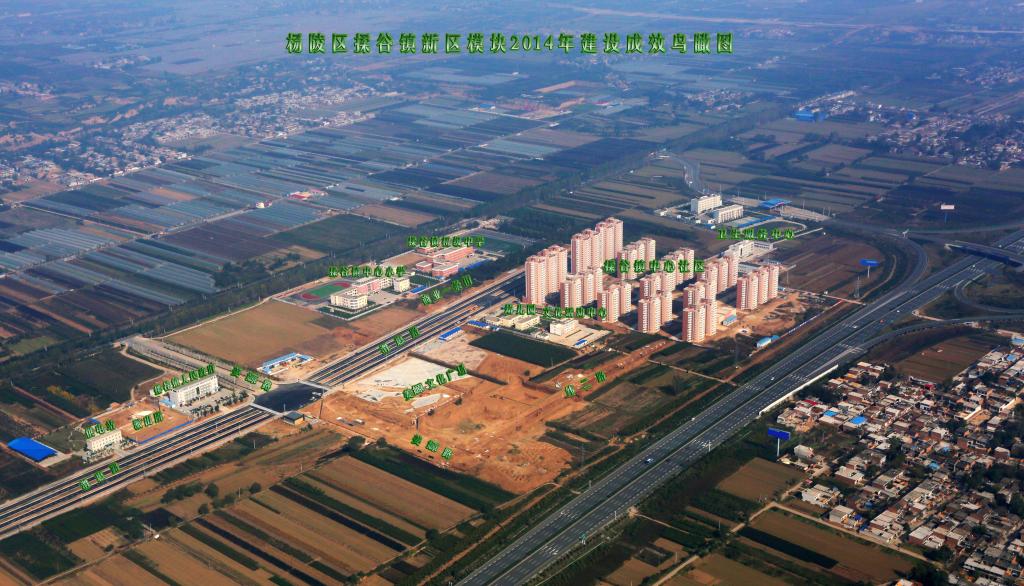 杨陵区揉谷镇新区模块2014年建设成效鸟瞰图