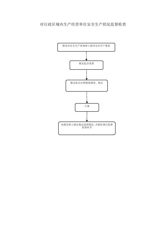 | 法定依据 | 《中华人民共和国安全生产法》第八条第三款 乡、镇人民政府以及街道办事处、开发区管理机构等地方人民政府的派出机关应当按照职责,加强对本行政区域内生产经营单位安全生产状况的监督检查,协助上级人民政府有关部门依法履行安全生产监督管理职责。 《安全生产事故隐患排查治理暂行规定》(国家安全生产监督管理总局令第16号令)第五条 各级安全监管监察部门按照职责对所辖区域内生产经营单位排查治理事故隐患工作依法实施综合监督管理;各级人民政府有关部门在各自职责范围内对生产经营单位排查治理事故隐患工作依法实施监督管理。 |