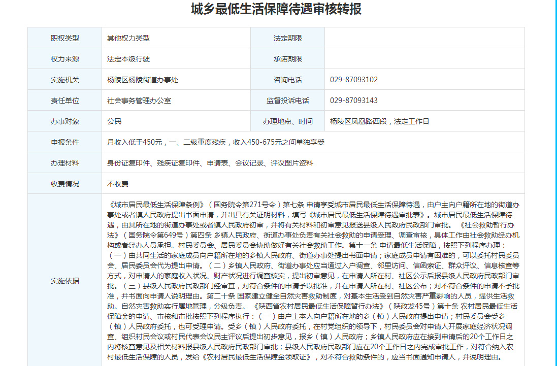 杨陵街道办“其他类”权责清单——城乡最低生活保障待遇审核转报