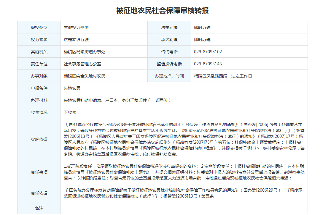 杨陵街道办“其他类”权责清单——被征地农民社会保障审核转报
