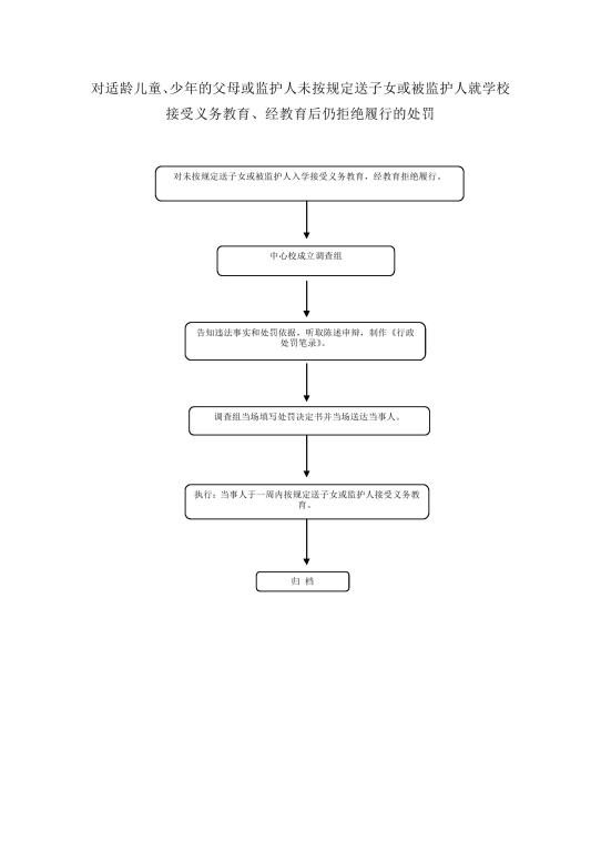 | 职权名称 | 对适龄儿童、少年的父母或监护人未按规定送子女或被监护人就学校接受义务教育、经教育后仍拒绝履行的处罚 | ||