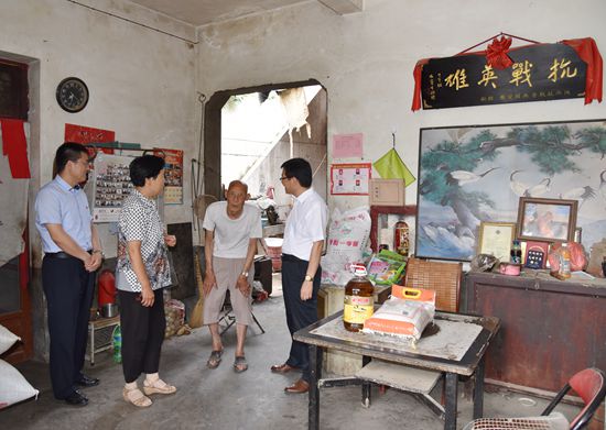 区委区政府办主任蒋立虎、办公室有关负责同志,及社区工作人员等先后来到刘友民、刘次荣、王稳、胡明军、胡展策家中,送去米、油等慰问品。每到一处,蒋立虎都会与慰问对象亲切握手交谈,详细询问慰问对象近来的身体状况和面临生活困难,嘱咐他们不要劳累,要保重身体,党和政府都惦记着他们。在抗战英雄胡明军的家中,蒋立虎一行还驻足观看了老人的荣誉证书和奖牌,向老人为祖国统一和中华民族伟大复兴事业所作出的贡献表示感谢,祝老人长寿安康。