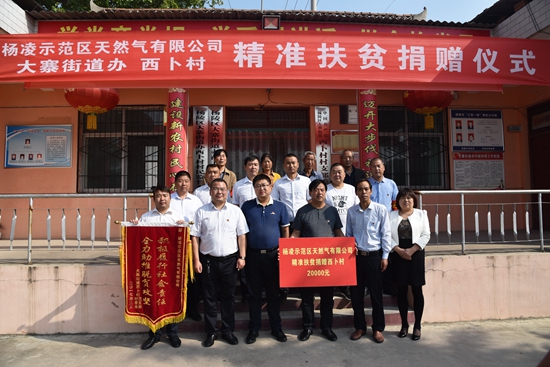 9月12日,“杨凌示范区天然气有限公司助推西卜村精准扶贫捐赠仪式”在西卜村村委会举行。杨凌天然气有限公司总经理韩军一行代表企业现场捐赠资金2万元整,西卜村党支部为企业赠送锦旗。大寨街道办主任杨诚、驻村工作组组长张浩儒、街道办副主任刘宝森及村两委会成员参加了捐赠仪式。