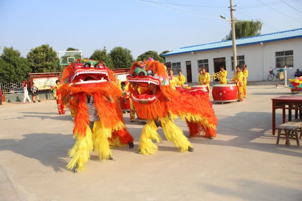 9月11日,杨陵区五泉镇曹堡村村委会广场上,人头攒动,热闹非凡。村民们敲锣、打鼓、舞狮、划旱船,表达对首届中国农民丰收节的期盼之情。
