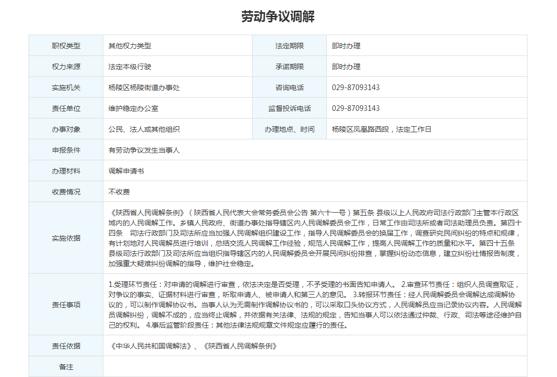 杨陵街道办“其他类”权责清单——劳动争议调解