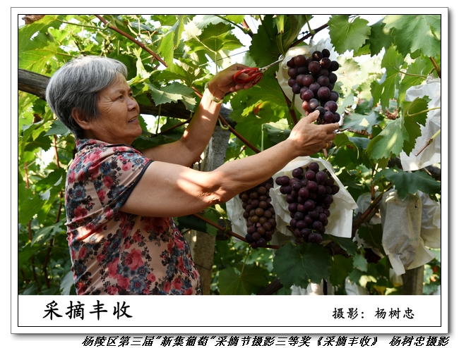 杨陵区第三届“新集葡萄”采摘节暨弘扬农耕文化助推精准脱贫系列活动摄影大赛得到了全区干部职工及社会各界摄影爱好者的积极响应,本次摄影大赛以“杨凌葡萄”为主题,体现杨凌葡萄产业推动农户脱贫致富、产业长足发展等内容,共收到摄影作品207幅。广大摄影爱好者深入揉谷镇新集村葡萄基地,多角度进行拍摄,多层面反映杨凌葡萄产业发展和助推精准脱贫。参赛作品体现原创性,有较强的思想性、艺术性。经过大赛评委会的认真评选,本次摄影大赛共有53幅作品入围获奖,评选产生一等奖3名,二等奖6名,三等奖10名,优秀奖34名。