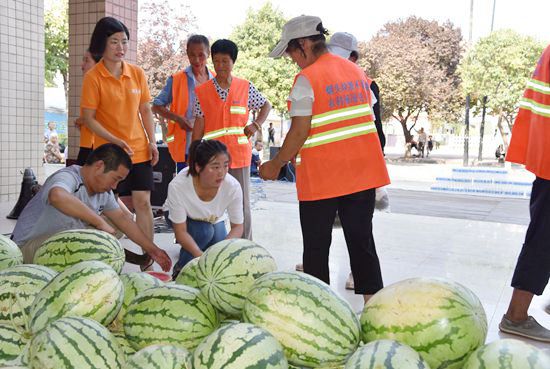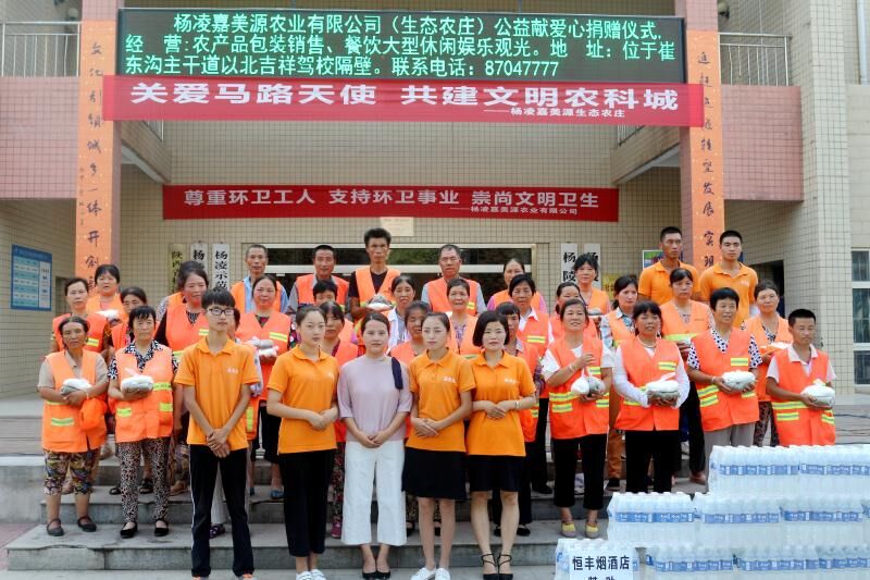 7月21日上午9时,“关爱‘马路天使’ 共建文明农科城”的宣传条幅醒目出现在杨陵区文化馆前,一场别开生面的爱心捐赠活动在后稷公园广场展开,爱心企业杨凌嘉美源农业有限公司、区市政局夏日送清凉,为“马路天使”分发西瓜、绿豆、白糖等消暑用品。