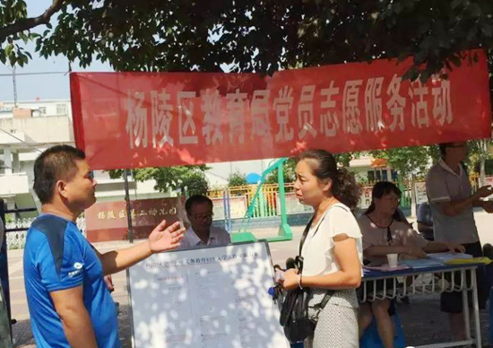 8月5日上午,杨陵区教育局利用节假日深入后稷公园社区,组织开展党员志愿服务活动。