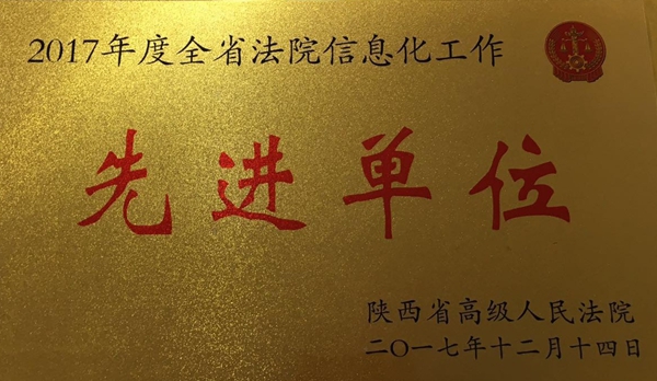 近日,陕西省高级人民法院授予杨陵区人民法院2017年度全省法院信息化工作先进单位称号。