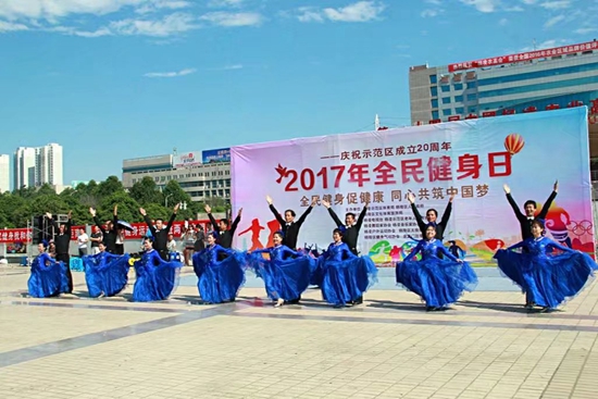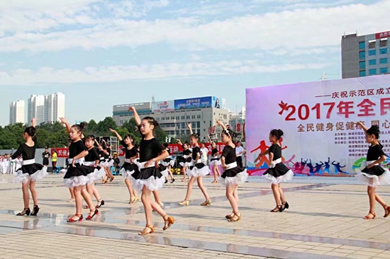 2017年8月8日是第九个“全民健身日”,为进一步推动全民健身运动发展、引导广大群众增强体育健身意识、享受体育发展成果,“全民健身日”展演活动于8日上午8点30分在杨凌会展中心南广场隆重拉开帷幕。