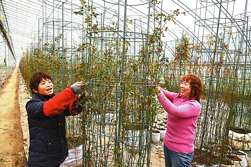 进入冬季,本应是农闲季节,可杨凌的一些农民却在田间地头劳作,冬灌、育苗、修剪果枝……到处一派忙碌景象。1月9日,记者在杨凌职业农民创业创新园里看到,务工人员正在大棚栽植月季,并将植株编成各类造型,甚是美观。正在忙碌的罗女士告诉记者:“整个大棚都摆着绿植造型,现已基本栽植完毕。待到四五月份,月季花开就可以上市销售了。”