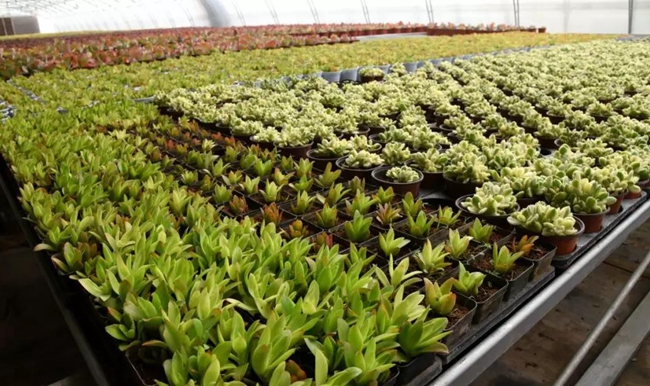 走进杨凌中来种植专业合作社的设施大棚里,一盆盆“憨厚可爱”的多肉植物,种在拳头大小的简易花盆里甚是美观,给人一种视觉上的萌秀,这种“萌萌哒”多肉植物,正是该合作社今年新开发的产业。