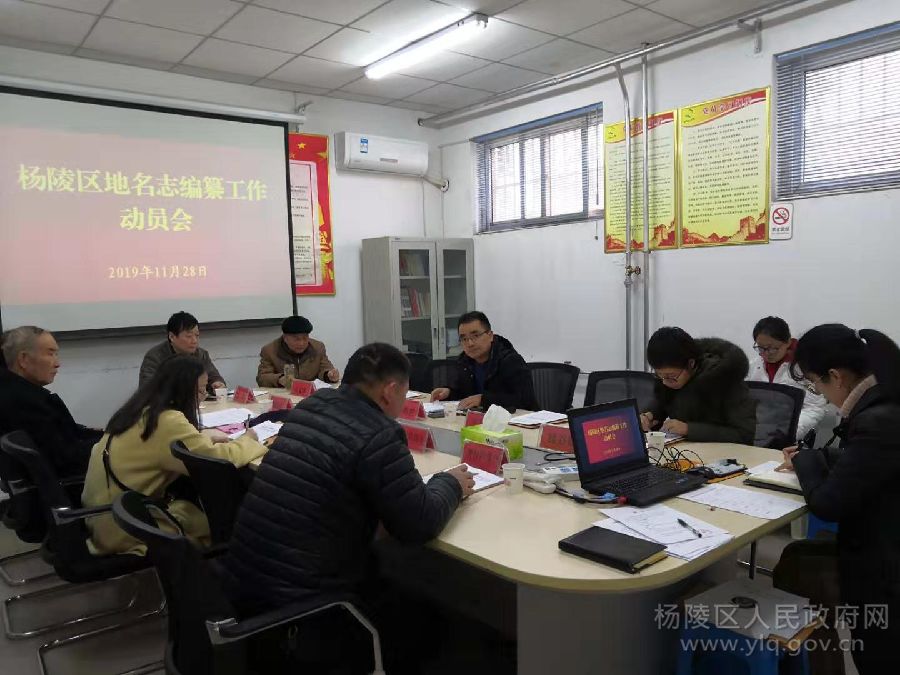 11月28日下午,区民政局组织召开杨陵区地名志编纂工作动员会,全面启动我区地名志编纂工作。区民政局副局长胡展世、各镇(街道)分管民政工作领导和民政办主任、区地名志编辑部特聘编辑、区划地名办工作人员等10余人参加了会议。
