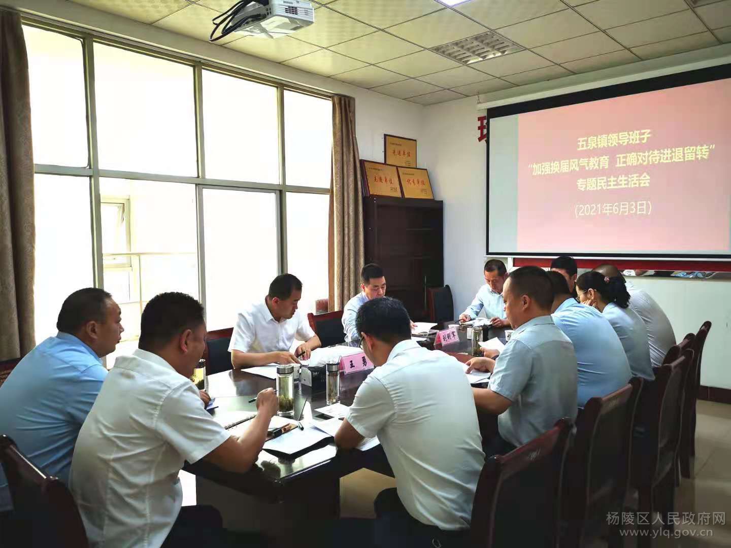 2021年6月3日上午,五泉镇召开“加强换届风气教育、正确对待进退留转”专题民主生活会。区委常委、区委组织部部长王勇同志和区纪委常委、监委委员、第一纪检监察室主任刘利军同志出席会议,镇党政领导班子成员参加会议,会议由镇党委书记杨诚主持。