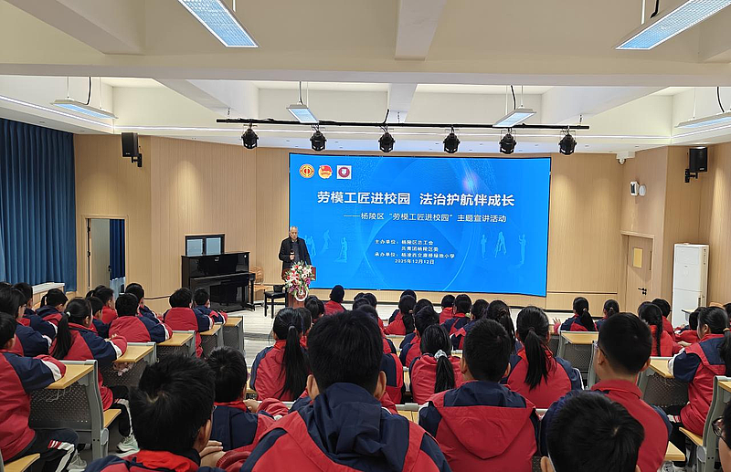 聚焦成长护航,法治筑基培育时代新人。12月12日,在杨凌西交康桥绿地小学开展“劳模工匠进校园·法治护航伴成长”主题宣讲。活动将劳模工匠的成长故事与普法教育深度融合,通过讲述劳模事迹诠释劳动价值与工匠精神,同时围绕未成年人保护、预防违法犯罪等内容进行普法教育,引导学生厚植劳动情怀、强化法治观念,筑牢自我保护防线,夯实人生成长根基。