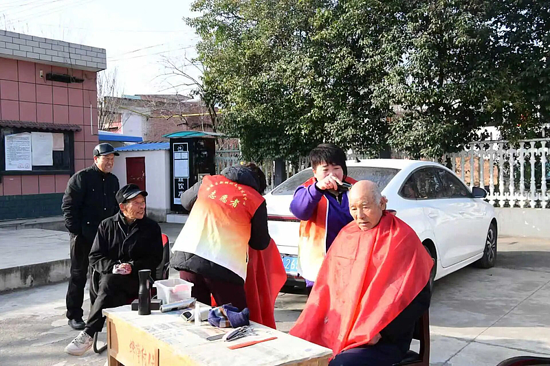 另一边的惠民服务现场同样暖意浓厚。作为绛南村的文明单位帮扶伙伴,杨陵康复医院组织医护团队正在开展义诊,为村民测血压、血糖,解答健康疑问并给出诊疗建议,让村民在家门口享专业医疗服务。义剪摊位前排起长队,志愿者精准对接老人需求修剪发型,获一致好评。现场还设立了政策解读专区,工作人员通过发资料、现场答疑,帮助村民厘清医保缴费相关问题,切实解决实际困惑。