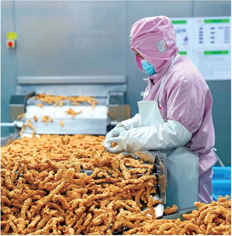 2月6日,在杨凌希望食品深加工基地项目生产车间,加工后的小酥肉金黄酥脆。