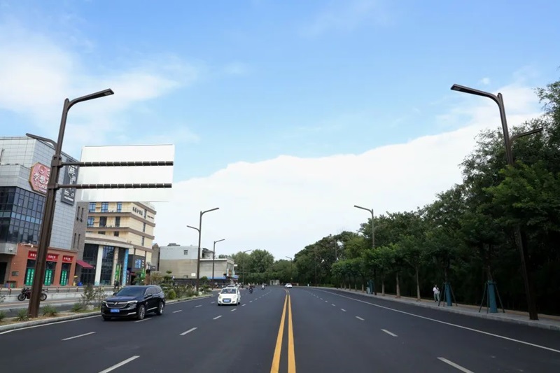 如今的高干渠路,路宽了,线少了,天际线清晰了,新装的路灯,通过采用多杆合一的方式,将其他杆的功能尽量整合到灯杆上,减少了人行道上路灯杆的数量,最大保障人员通行率。同时人行道砖采用陶砖,更加坚实耐用,质量较以前有很大提升。