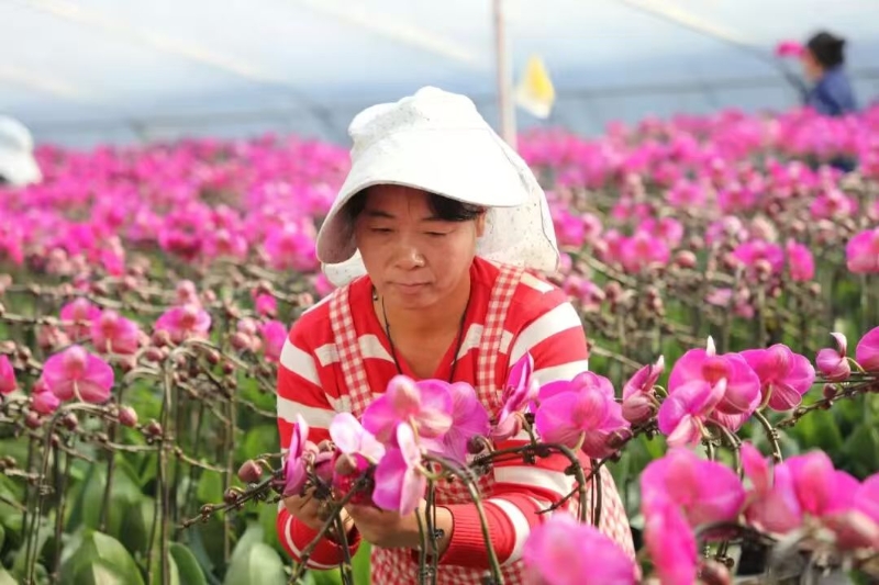 为抢抓蝴蝶兰近年来市场发展机遇,陵湾村成立了村集体经济项目——杨凌沁林农业种植合作社,合作社入股杨凌蝴蝶兰示范基地,采取“村集体+农户+公司(杨凌沁歆园艺有限公司)”的合作模式,推动蝴蝶兰产业成为村集体经济的主导产业,基地用工基本都是陵湾村和周边村民,直接带动村民年均增收3万元以上。小小蝴蝶兰已催生出陵湾村的“美丽经济”,铺就了村民“花样”致富路。