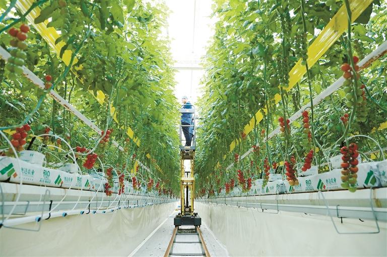 经过不断探索,该园区已形成“批发市场+高端商超+线上平台”的全渠道销售体系。销售网覆盖华东、华中、西南市场。“我们2024年的产值达1000万元,成为盒马生鲜、麦德龙等知名商超的供货商,还在京东等网络平台开设线上店铺,市场份额持续扩大。眼下,园区的樱桃番茄供不应求,基本上采收一批就能销售一批,2025年销售额达1200万元。”刘若愚说。