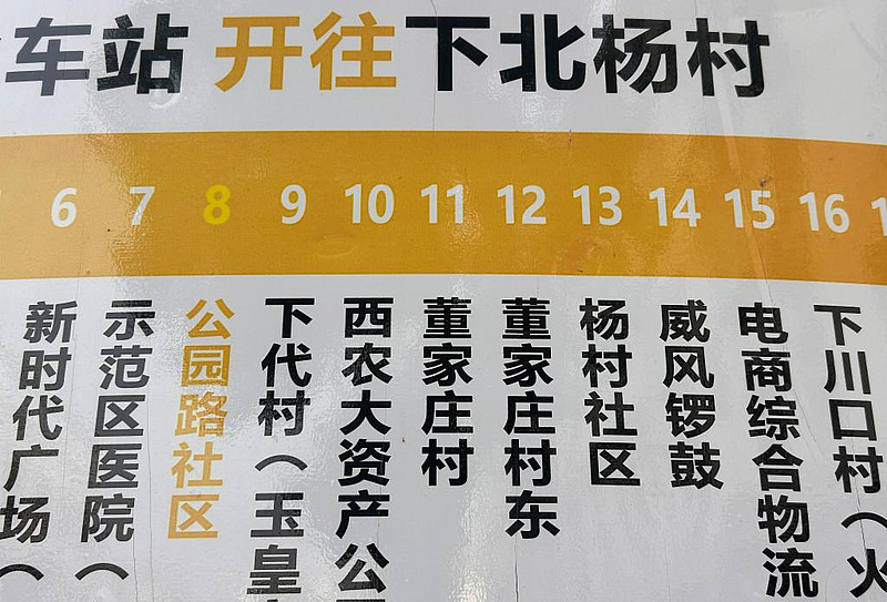 杨凌城乡公交站牌上的威风锣鼓站。新华社记者 郑昕 摄