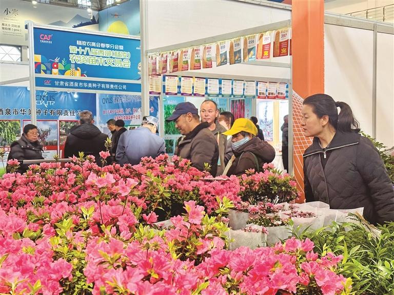 三月二十日,第十八届西部(杨凌)农资苗木交易会花卉展吸引游客驻足参观。