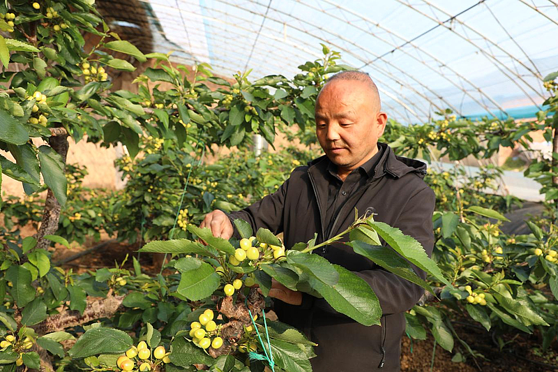 “支部+合作社+公司+农户”的模式,让村民真正成为产业发展的受益者。通过土地流转入股、务工就业、分红收益等多种方式,村民实现了多元化增收。“在家门口就能上班,既能照顾老人孩子,又能拿到稳定收入,樱桃产业让我们的日子越过越红火。”在大棚中为樱桃授粉的村民王鹏笑着说。