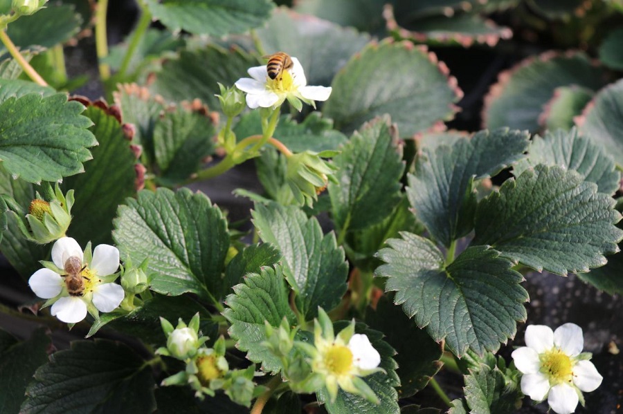 11月24日,记者来到杨陵区大寨街道办黎陈村的草莓大棚里,草莓苗长势茂盛,一派绿意盎然,花开正好,大部分秧苗都已结出大小不一的青色果实,个别草莓果已着色变红。
