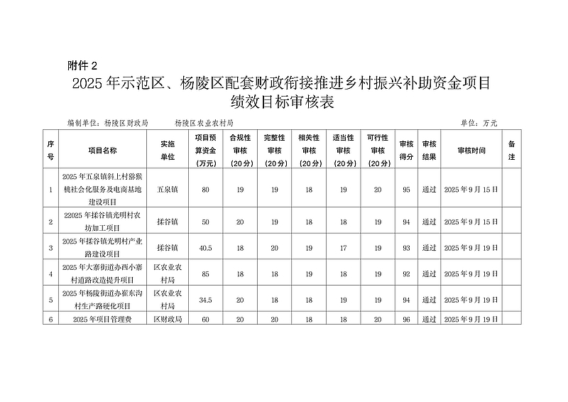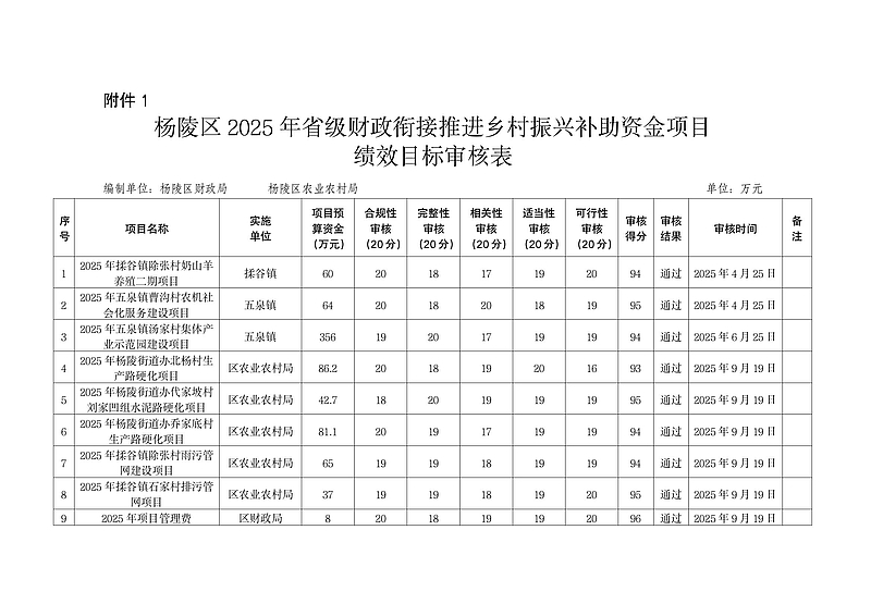 附件:1.杨陵区2025年省级财政衔接推进乡村振兴补助资金项目绩效目标审核表