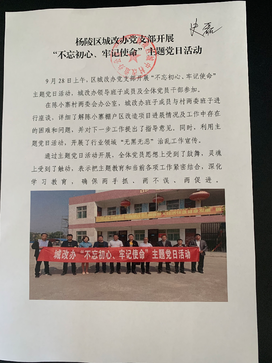 在陈小寨村两委会办公室,城改办班子成员与村两委班子进行座谈,详细了解陈小寨棚户区改造项目进展情况及工作中存在的困难和问题,并对下一步工作提出了指导意见。同时,利用主题党日活动,开展了行业领域“无黑无恶”治乱工作宣传。