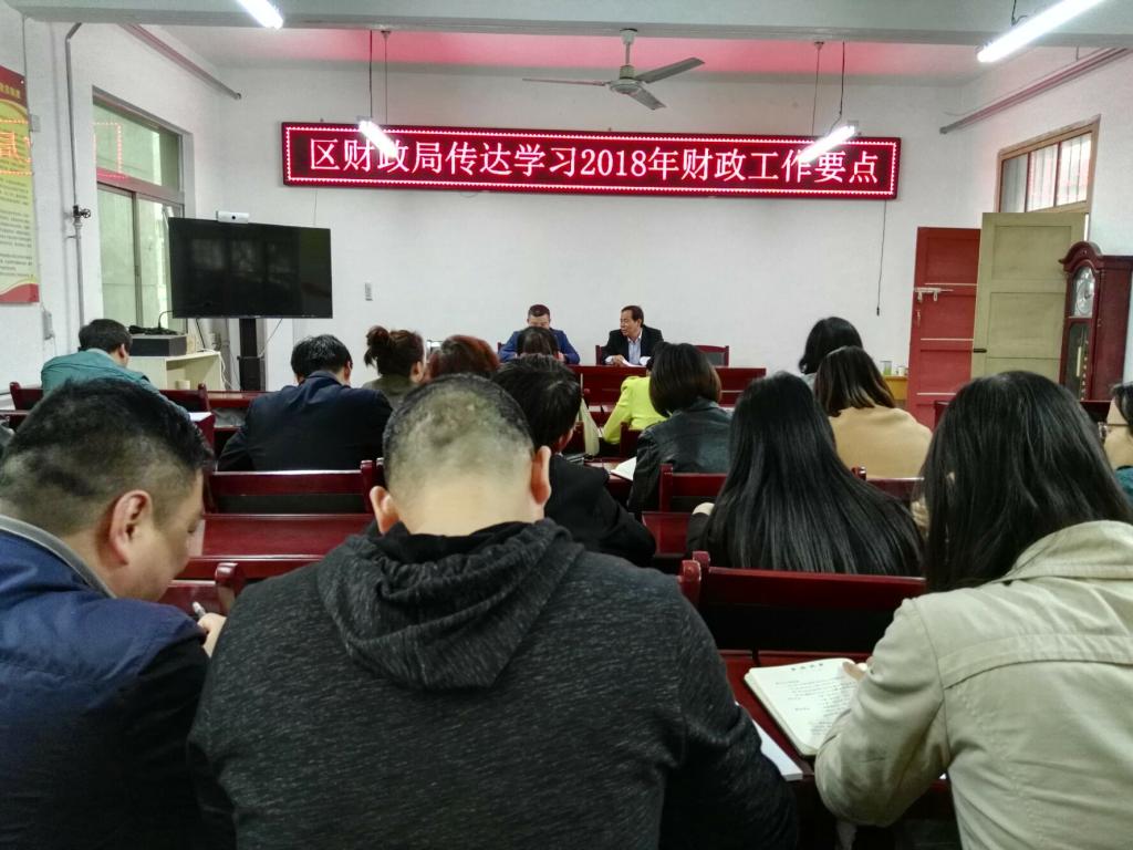 2018年4月11日下午,杨陵区财政局组织全体干部职工在局函授站二楼会议室召开传达示范区2018年财政工作要点工作会议。