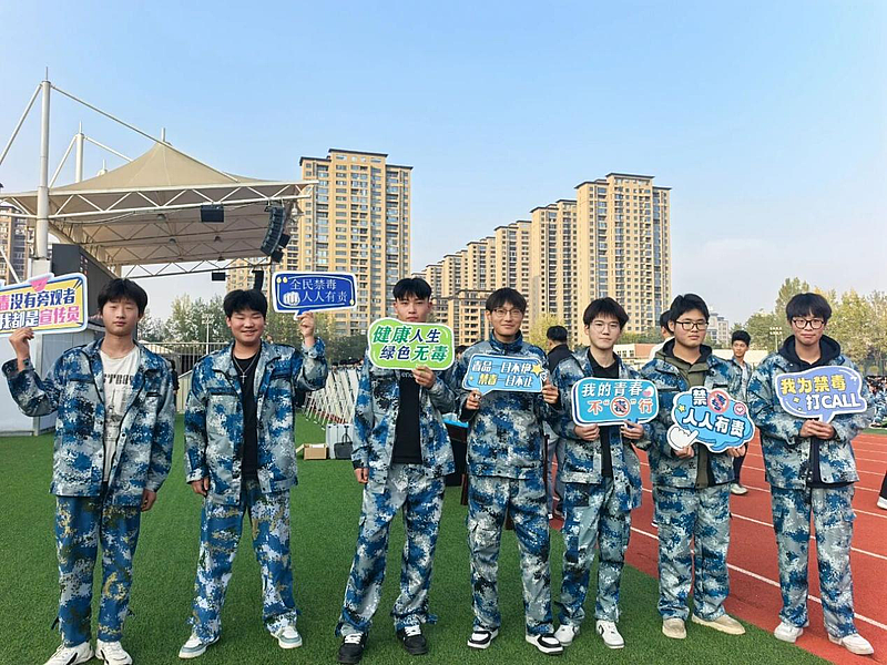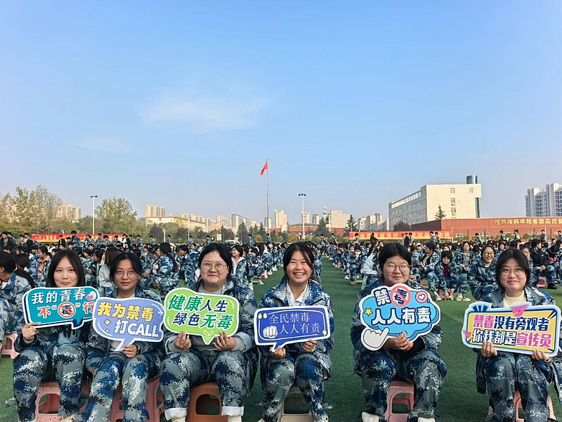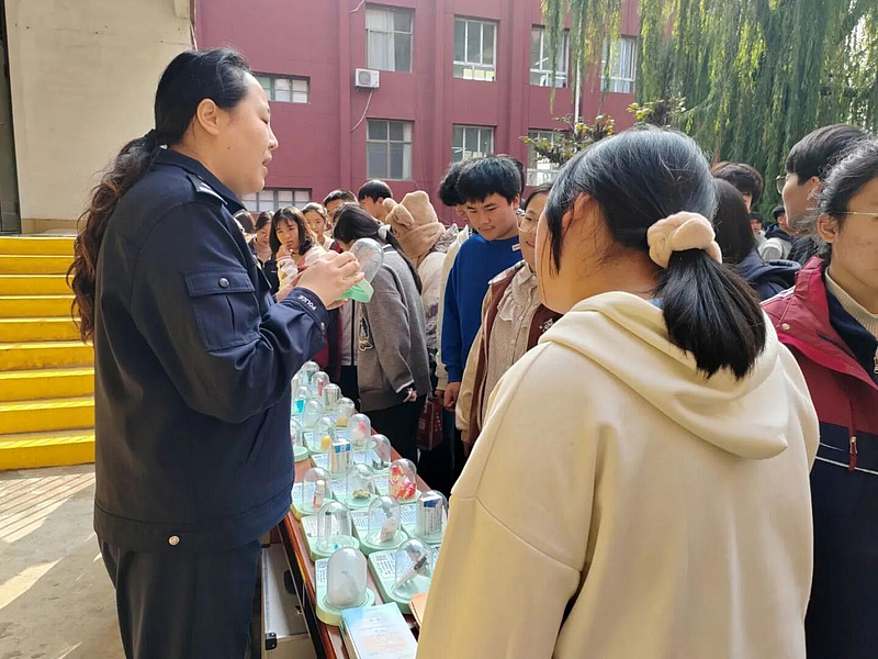 活动在两校同步设置仿真毒品模型展与禁毒知识展板,直观展示50余种新型伪装毒品(如“开心水”“眼药水”“彩虹烟”等),工作人员细致讲解其伪装手段与危害,帮助学生认清毒品“真面目”。两校师生集体进行禁毒宣誓,誓言“拒绝毒品、守护青春”,并手持“我的青春不‘毒’行”“全民禁毒 人人有责”等标语打卡宣传,以青春之声传递禁毒决心。通过宣誓与互动打卡,将禁毒意识转化为行动承诺。