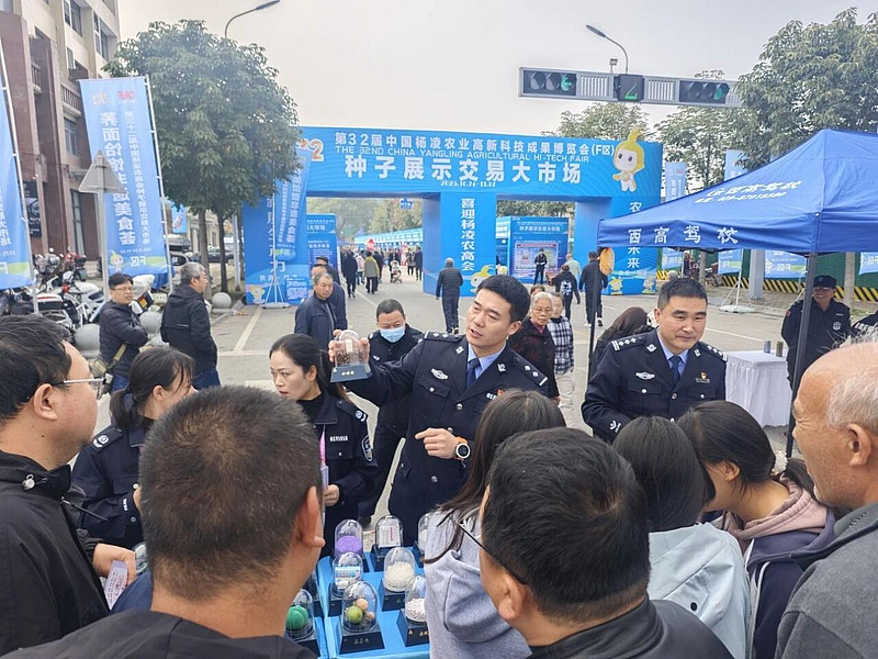 同时在农高会F馆展览现场,省新周戒毒所“心舟”禁毒法治宣传队联合杨陵区司法局设立了禁毒咨询点,干警们通过现场展示罂粟、大麻、古柯等毒品原植物仿真模具并结合真实案例以案释法的方式向过往参会群众普及毒品的种类、危害以及如何远离毒品、辨别毒品和防范毒品等多方面内容,劝诫群众避免误种罂粟、大麻等毒品原植物。同时,倡导大家将禁毒知识传播给家人,形成自发、自愿拒绝毒品的共识。最后现场开展“火眼金睛识毒株”互动游戏。活动气氛活跃,大家在轻松互动中加深了对禁毒知识的掌握。