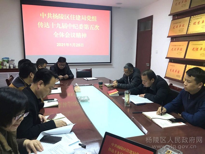 1月25日上午,区住建局在二楼会议室召开党组扩大会议,传达学习第十九届中央纪委第五次全体会议精神。局党组成员、各下属事业单位负责人、办公室人员参加会议。