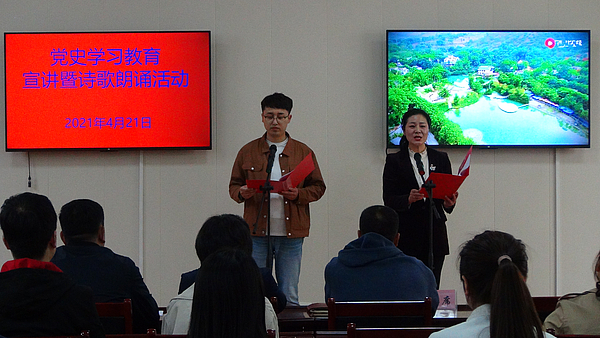4月21日,杨凌示范区自然资源局党组组织开展了党史学习教育集中宣讲暨诗歌朗诵活动,活动由局党组书记、局长薛建军同志主持,局副处级以上领导干部,杨凌示范区自然资源系统全体党员干部、参与诗歌朗诵的干部职工参加了活动。