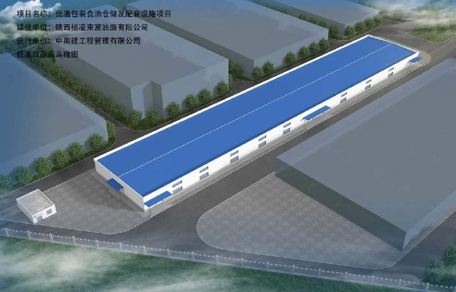 3.低温包装食用油仓储及配套设施项目。由杨凌来富油脂有限公司投资建设,总投资2300万元,新建一座4350平方米低温包装食用油仓库,配套立体货位、托盘、叉车及仓库消防等设施。