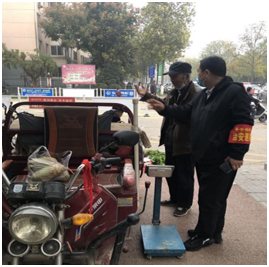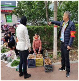 执勤同志文明劝导,清理路段内占道摆摊设点