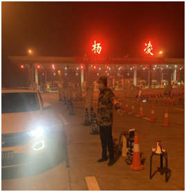 农高会开幕当天凌晨5:30机关干部到达路段,定点定岗开展工作
