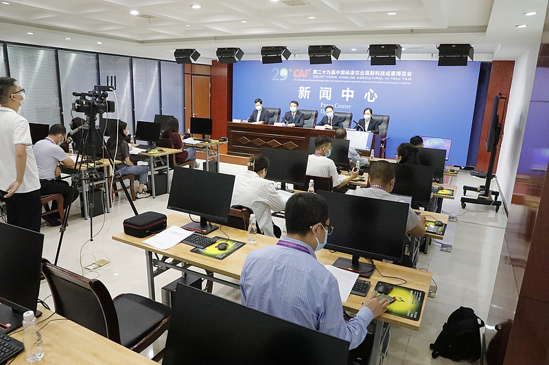 9月16日上午,第二十九届杨凌农高会田间展新闻发布会在农高会新闻中心举行。