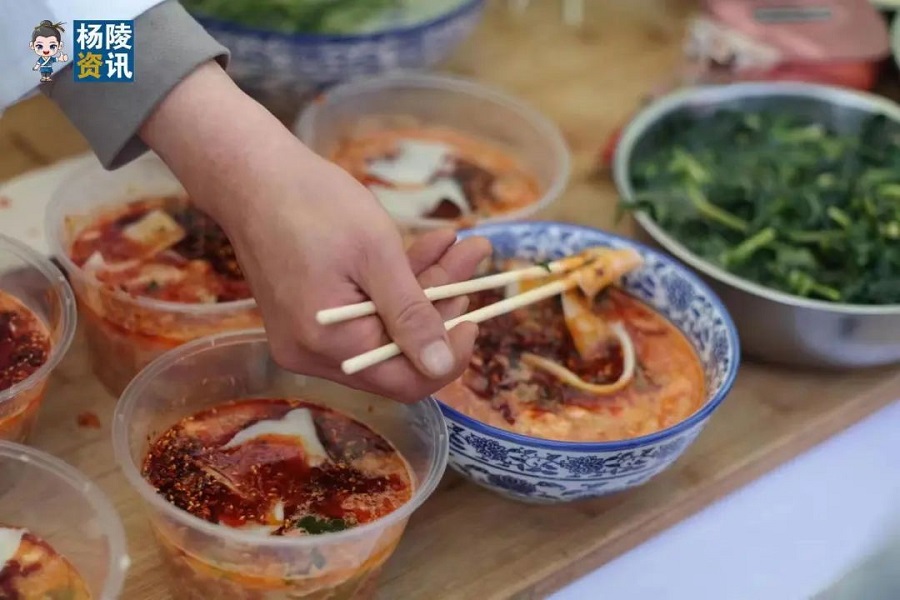 科技在面,功夫在蘸,灵魂在蒜。杨凌蘸水面不同于其他地方特色面食,从小麦面粉选用,油料蔬菜辅料,到制作加工工艺,都饱含了杨凌科技元素。本次比赛主办方特设置“科技创新组”“示范引领组”“乡村振兴组”“欢乐亲子组”四个组别,他们分别来自区内高校科研单位、杨陵区各镇办、有关学校和餐饮行业领域,大家纷纷拿出看家本领,为全国跑友、国外友人、各界群众精心展示杨凌蘸水面制作绝活。