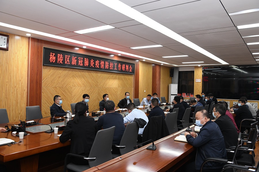 3月11日晚,杨陵区召开新冠肺炎疫情防控工作研判会,区委副书记、区长李朝喜主持会议并讲话,示范区卫健局局长李春安,示范区医院党委书记、院长王存良到会指导。