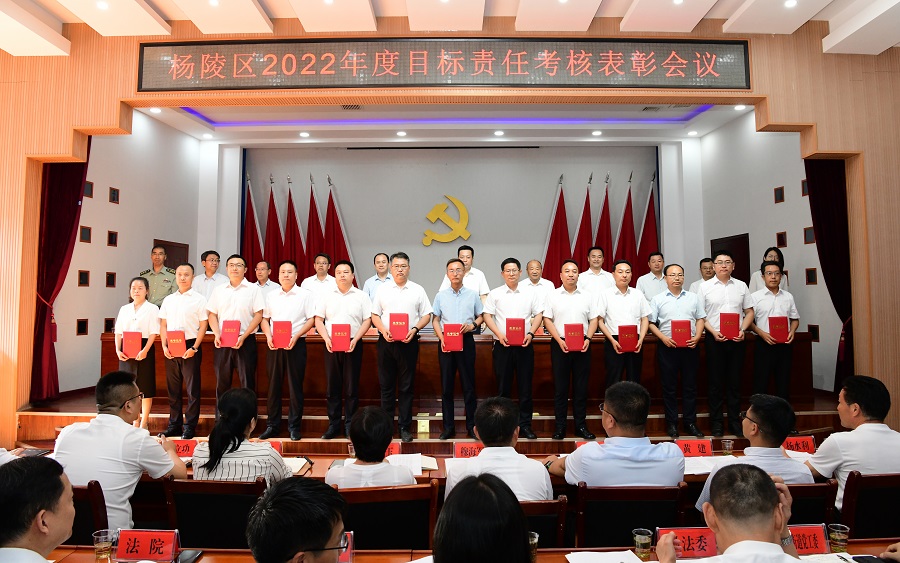 会议现场宣读了《关于表彰2022年度目标责任考核先进集体和先进个人的决定》,进行了大会表彰。通报了二季度重点项目重点工作“晒比评”结果,排名第一的镇(街道)作了经验交流,排名最后一名的镇(街道)作了表态发言,并安排部署了杨陵区下半年重点项目有关工作。