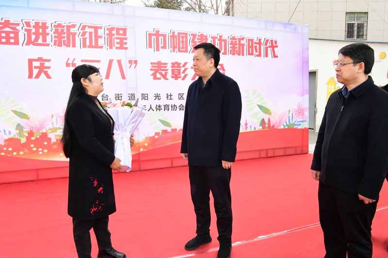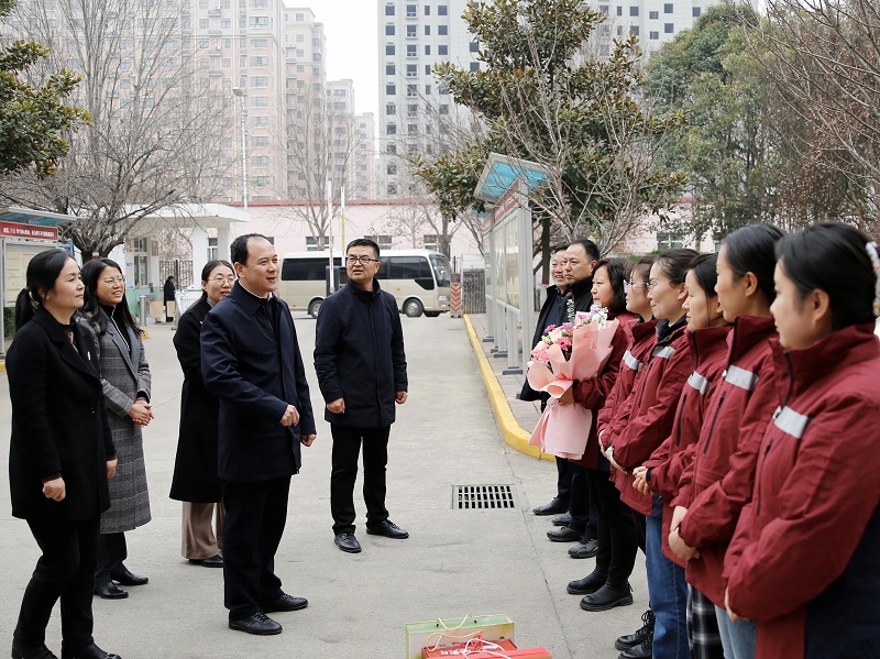 在李台街道阳光社区,李函为中国妇女十三大代表、全国妇联系统劳动模范、社区党委书记万传慧送上节日祝福并亲切交流,对她多年来用心用情服务群众、服务社会表示赞扬。希望她继续坚定信念、持续担当有为,切实发挥好“领头雁”作用,以更饱满的热情、更务实的作风、更火热的干劲全身心投入到工作中,不断增强社区居民的获得感、幸福感和安全感。