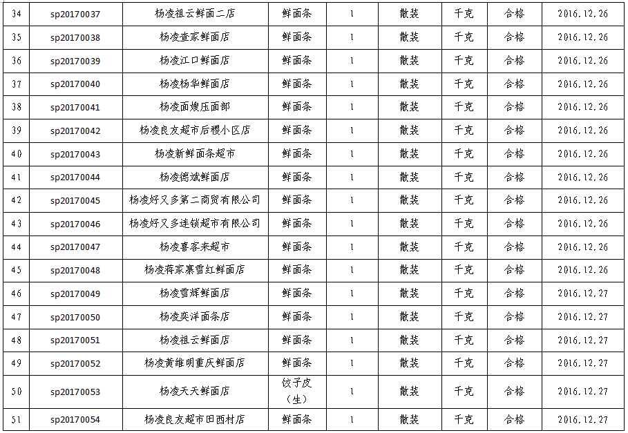 12月份,杨凌示范区食品药品监督管理局杨陵区分局组织对辖区城乡范围内部分生产经营馒头及所有生湿面条的加工门店和超市进行了全面抽检,本次抽检依据食品中可能违法添加的非食用物质和易滥用的食品添加剂品种名单、GB2760-2014《食品安全国家标准食品添加剂使用标准》标准要求进行,主要检测常见非法添加的过氧化苯甲酰、吊白块、铝残留、大肠菌群、硼砂、山梨酸等项目,共抽检60批次,合格60批次,合格率100%。