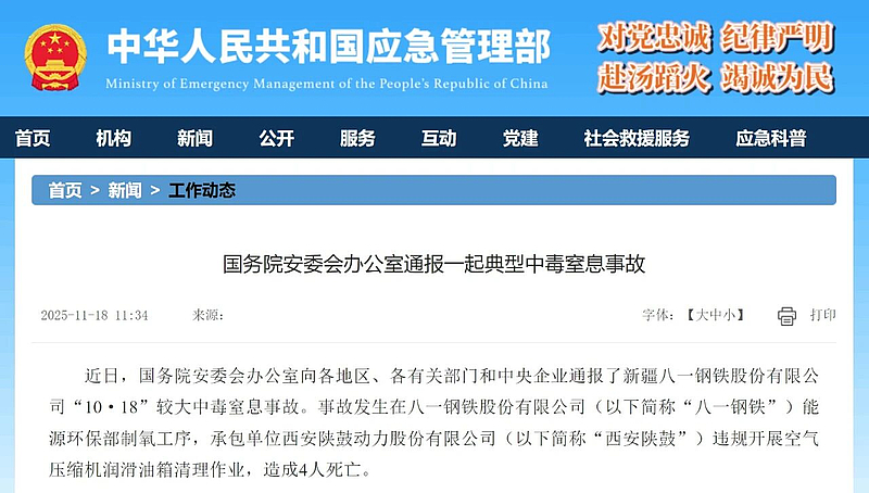 今年10月27日,位于安徽省池州市东至县的安徽鑫泰新材料有限公司发生一起有限空间中毒窒息较大事故,造成4人死亡。