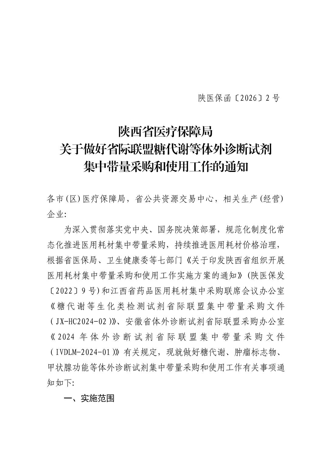 陕西省医疗保障局关于做好省际联盟糖代谢等体外诊断试剂集中带量采购和使用工作的通知