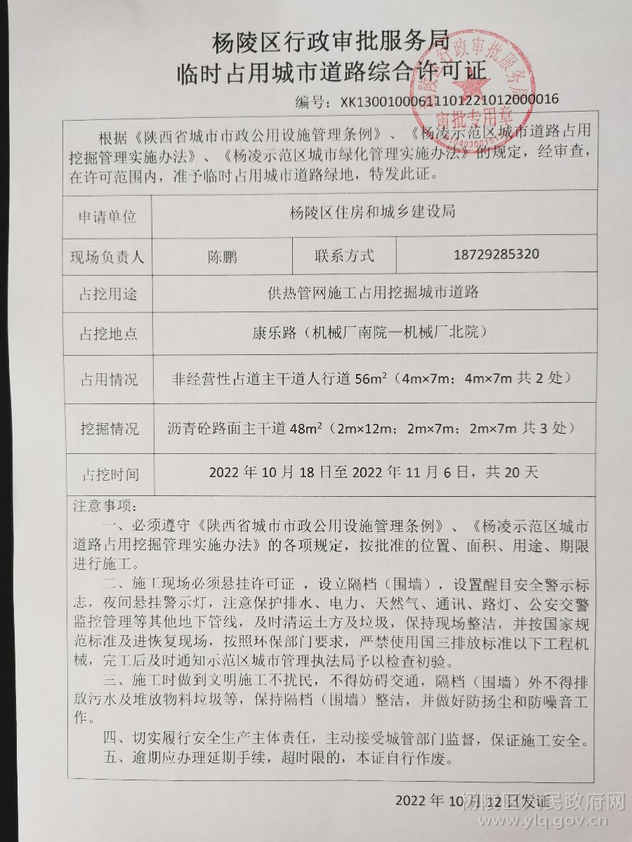 占用挖掘城市道路审批公示(马场路至康乐路)