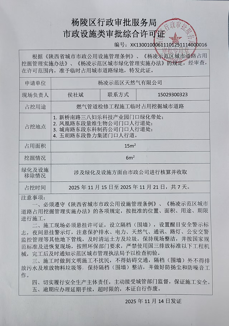 占用挖掘城市道路审批公示(燃气管道检修工程施工临时占用挖掘)